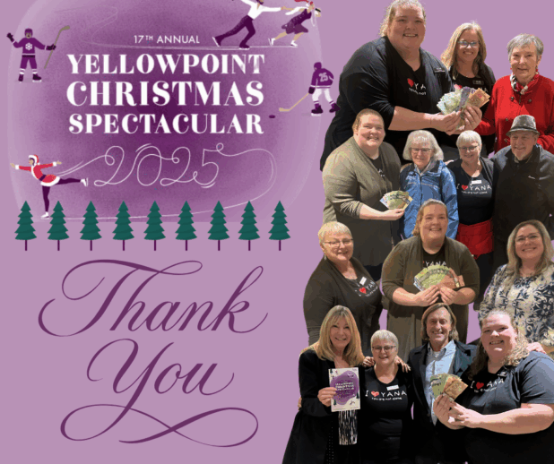 We want to send a big thank you to Katy and everyone involved with Yellowpoint Christmas Spectacular for having YANA back again this year. We’re so grateful for the time, effort, and care that goes into putting on these shows and for choosing to support our organization.
